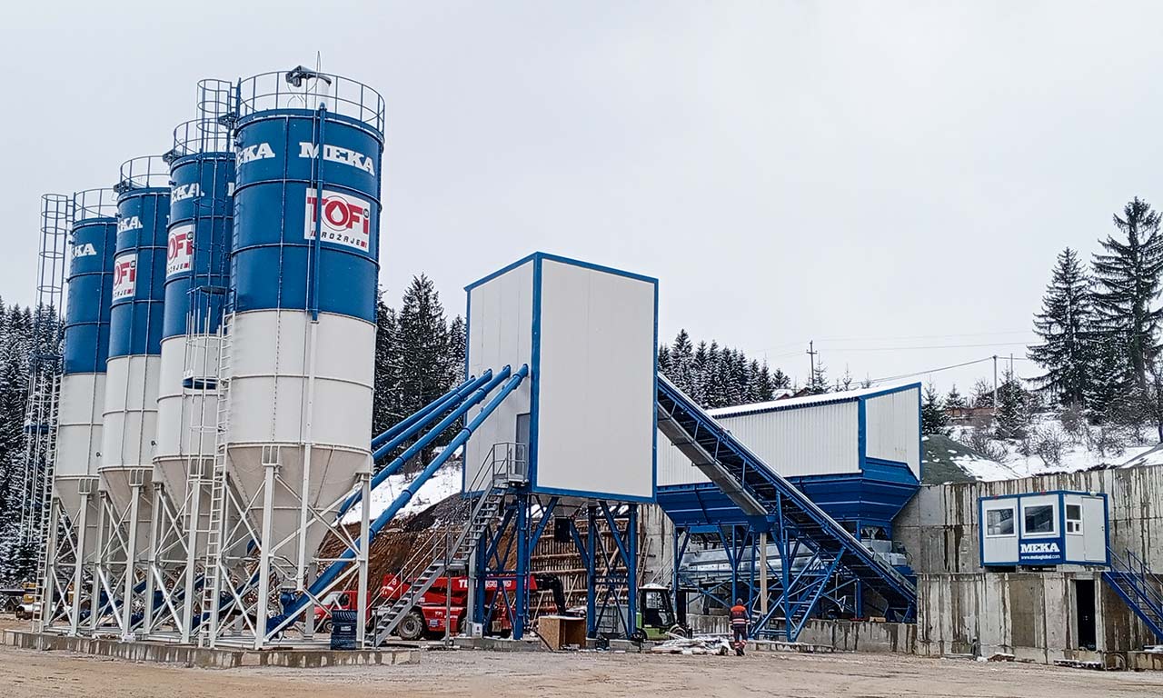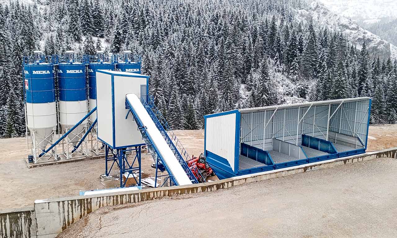 C120 может быть быстро установлен на площадке и готов к производству бетона благодаря предварительно подготовленным электрическим, водным и пневматическим системам на заводах MEKA.