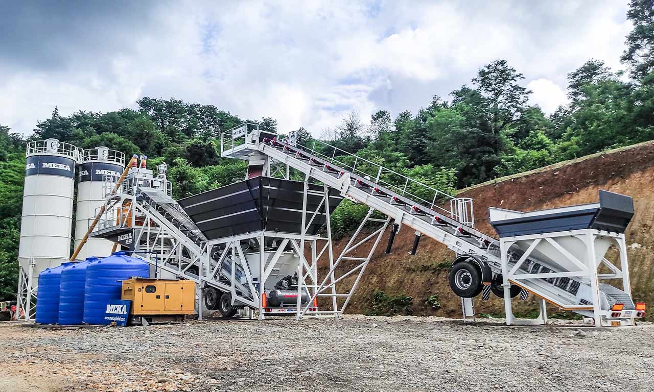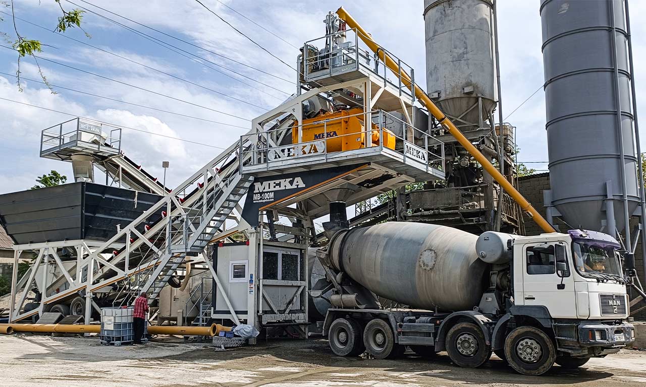 Мобильный бетонный завод M100 с двухвальным смесителем MEKA ёмкостью 2,25 м³ обеспечивает высокую производительность, одновременно предлагая значительное преимущество благодаря низким эксплуатационным и техническим затратам.