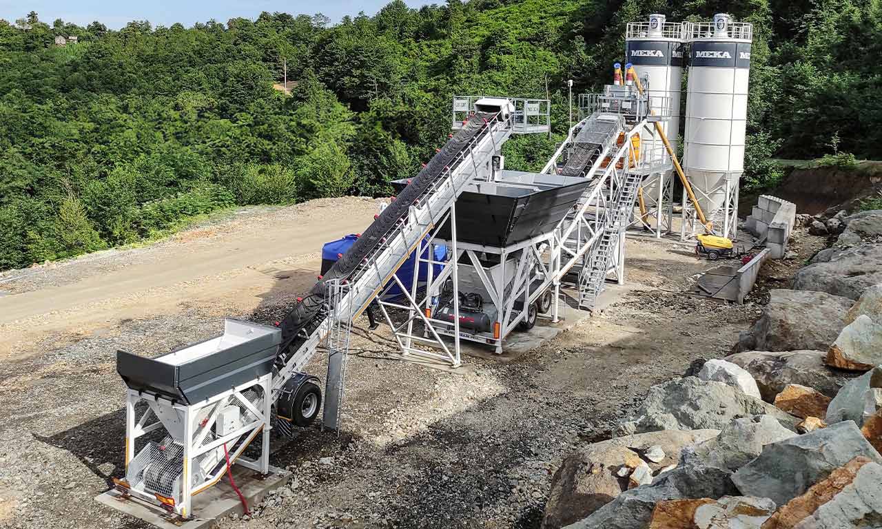 M100 может быть быстро установлен на ровной бетонной поверхности, а при необходимости перемещения его легко разобрать и быстро перевезти на новую строительную площадку. Предварительно проложенные на заводе MEKA электрические, водные и пневматические линии значительно сокращают время установки и ввода в эксплуатацию.